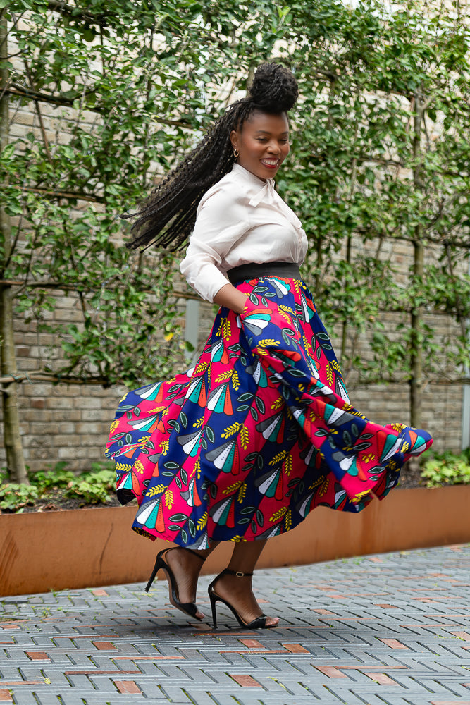 A splash of colour represents vibrancy, aliveness, and all things beautiful! The Petra floral skirt is not just an everyday piece, this one is a timeless "feel good" piece that you can wear at your bestie's wedding, also suitable for brunch dates with family and friends, but we also love that you can pass this skirt from generation to generation because of it's classic and ageless look. Here is to forever with Petra!