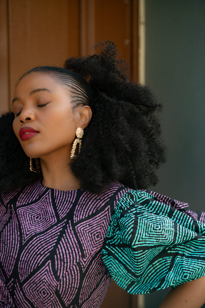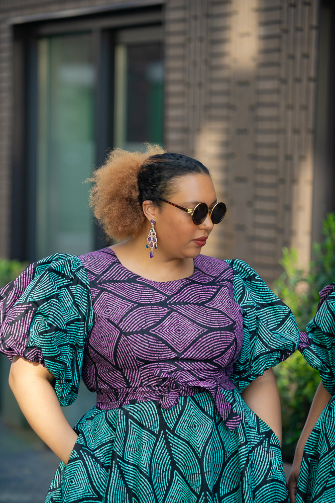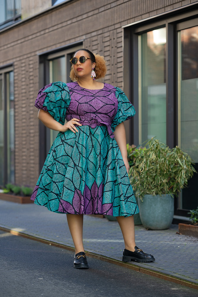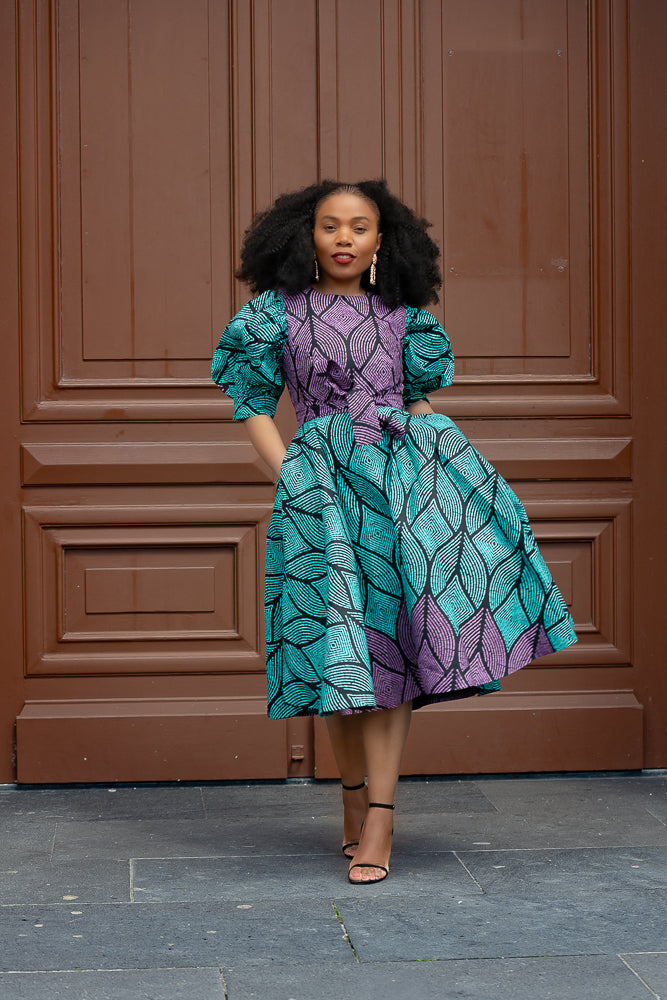This dress says Zero excuses for not showing up as your best. It is just flawless! It flows, fitting around the waist with stunning puffy arms to give it that extra edge. The only question is when is the next occasion, so you can rock your Nefertiti dress. The purple and blue contrast makes the dress stand out.