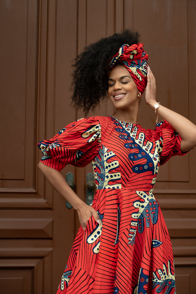 This dress says Zero excuses for not showing up as your best. It is just flawless! It flows, fitting around the waist with stunning puffy arms to give it that extra edge. The only question is when is the next occasion, so you can rock your Nefertiti dress. The purple and blue contrast makes the dress stand out.