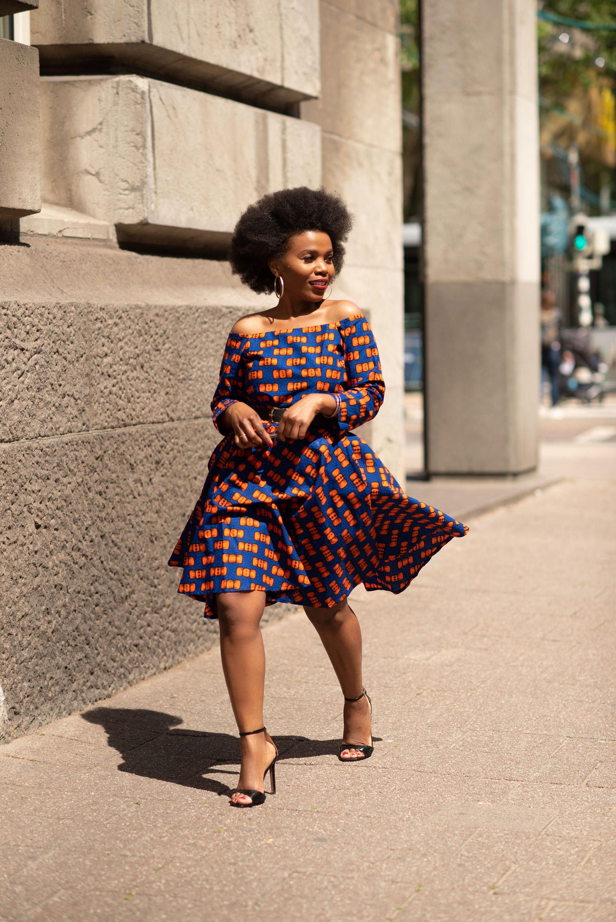 Go back to work in style in this lovely dress. It has been a while since you have been off work or had any social gatherings, so why not step out looking fresh and new in this gorgeous blue and orange piece. it is definitely a compliment fisher!
