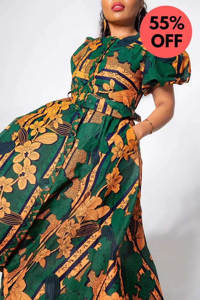 Impeccably crafted dress, designed with meticulous attention to detail. Its flattering silhouette effortlessly flows from top to bottom, exuding confidence. The ankle-length beauty comes complete with its own belt, giving you the option to cinch the waist for a sexier fit. However, rest assured that even without the belt, the buttons down the front do an impeccable job of accentuating your waist and creating the perfect shape. You can confidently rock this dress and embrace your curves effortlessly.