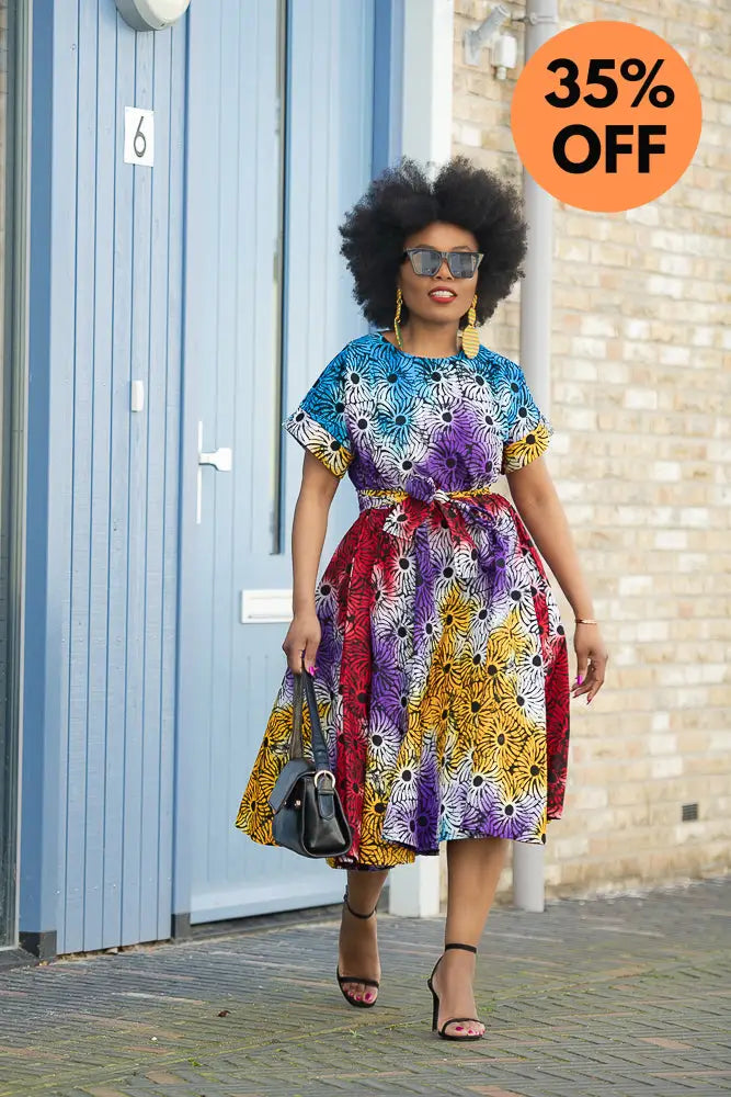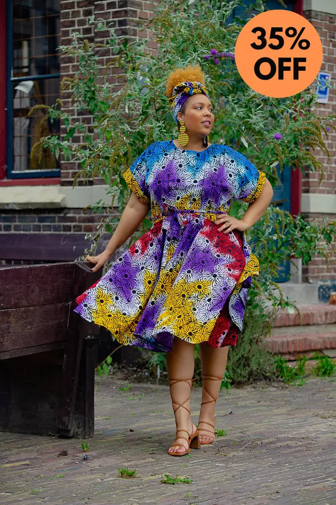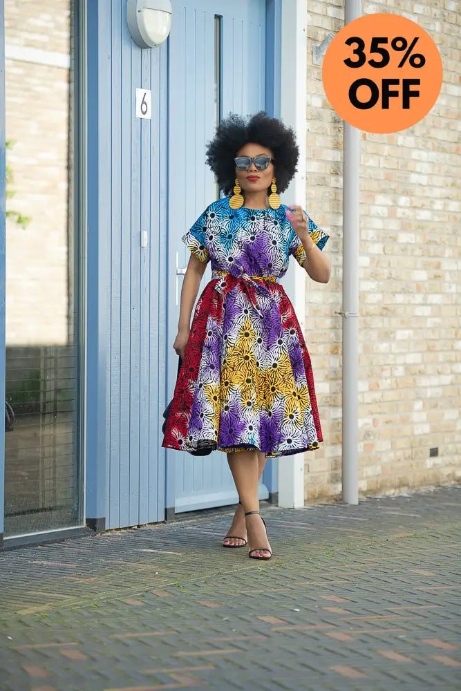 Meet the Laila Multicoloured dress—a true masterpiece crafted with boundless creativity and adorned with the stunning flair of a rainbow. Laila is making a bold statement this season, captivating hearts with her vibrant hues and dynamic energy.