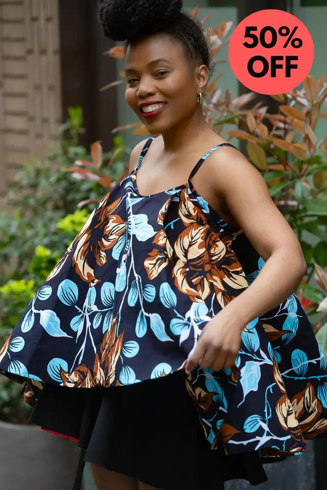 This spaghetti-strapped blouse with nicely laid folds is sure to turn heads, it is an eye-catching piece. It can be dressed down with slippers and shorts for hot summer days out or up with a trouser and heels for a nice evening out.
