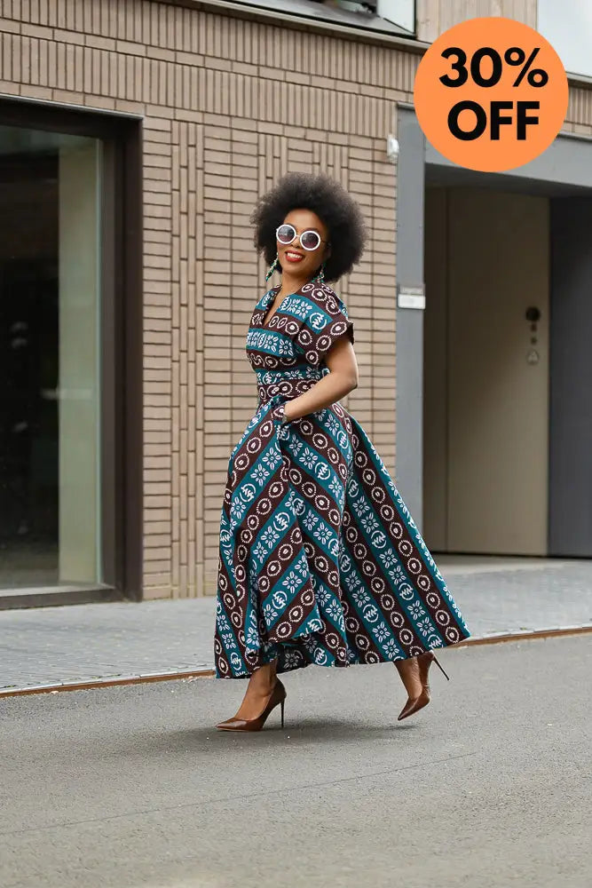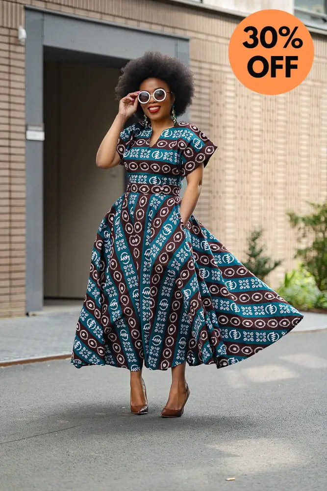 Have you ever fallen head over heels and found yourself in a bit of a "uh-oh, I'm in trouble" situation? Well, that's the exact sentiment you might be experiencing right now as you lay your eyes on the tribal blue Peju dress.
